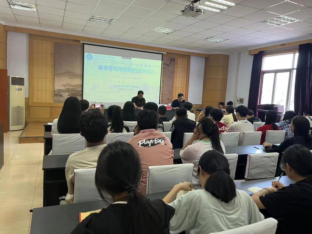 讲座上,赵宇亮医师分析了春夏季为什么会经常发生传染病流行,为同学们展示春夏季常见的传染病,如流行性感冒、结核病、新冠肺炎等,阐述了春夏季传染病的传播途径和常见的临床表现,以具体生动的临床案例讲解了如何预防传染病的发生,他强调接种疫苗、保持良好的生活卫生习惯、增强免疫力的重要性。这次讲座对加强春夏季传染病防控工作,增强学生的防病意识起到了积极作用。(摄影:徐鹏飞)